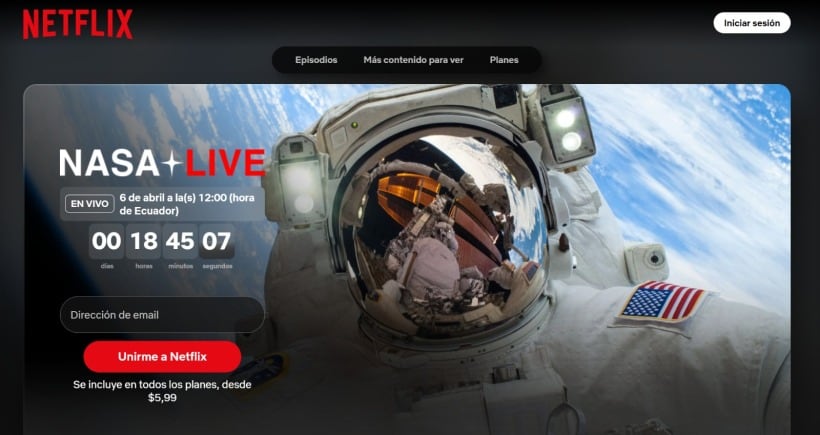 Los usuarios podrán acceder al evento a través de YouTube con la cuenta oficial de la agencia espacial. Netflix ya incluye el anuncio en su sección de novedades semanales para sus suscriptores.