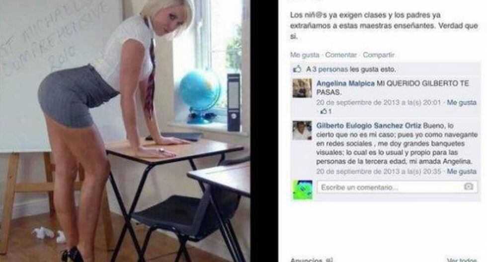 En una de esas fotos, publicada el 20 de septiembre de 2013, cuando en Oaxaca había un paro de labores en las escuelas públicas debido a las protestas de los maestros contra la reforma educativa, Sánchez Ortiz publicó la fotografía de una mujer que viste minifalda, recargada sobre un pupitre escolar.