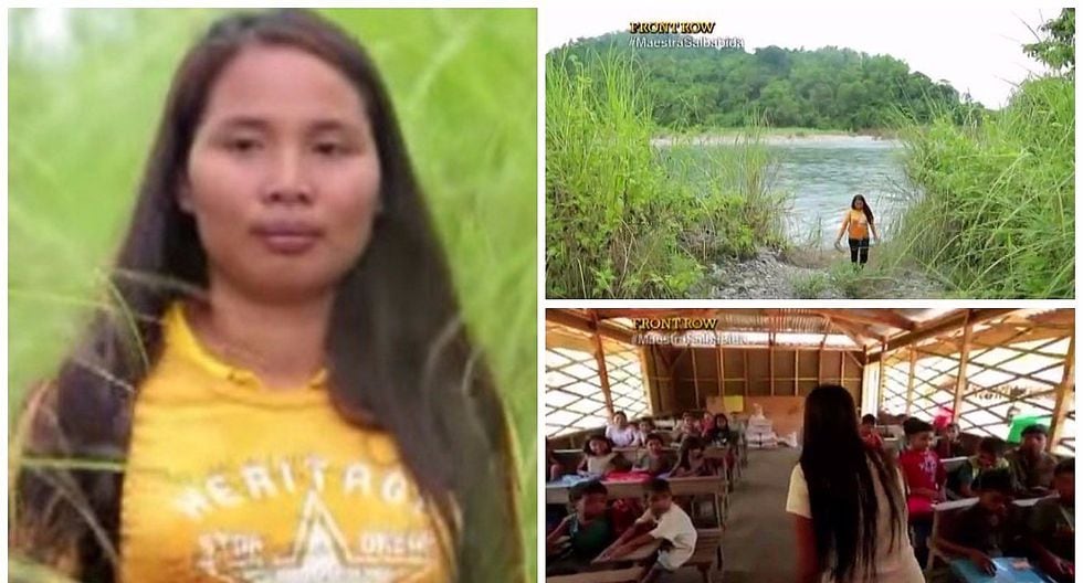 Docente por vocación. La maestra Elizabeth Miranda cruza cinco ríos y hace un recorrido de dos horas para llegar a la escuela donde enseña a un grupo de niños en medio de la selva de Filipinas.