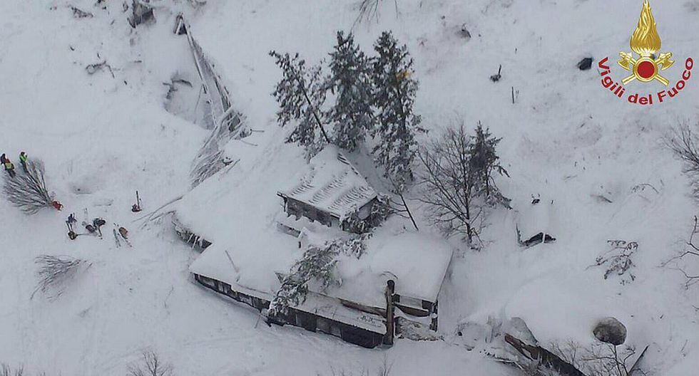 El Hotel Rigopiano de Farindola, en el centro de Italia, donde se teme que puede haber 30 personas atrapadas, desapareció completamente bajo toneladas de nieve, ramas y rocas, según se aprecia en imágenes grabadas por los equipos de rescate.