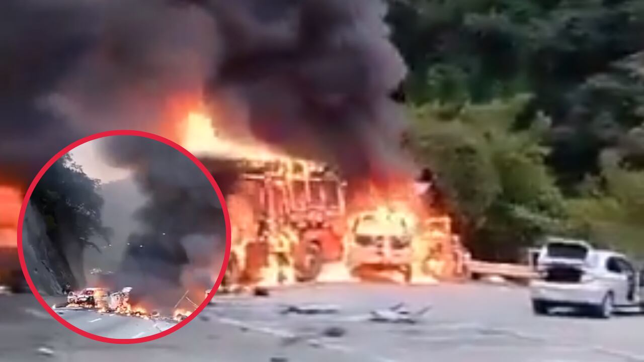 Este miércoles, al menos 8 personas perdieron la vida en un trágico accidente de tránsito que provocó un incendio en una concurrida autopista que conecta con Caracas. Autoridades de Venezuela informaron que 17 vehículos estuvieron involucrados en el siniestro, algunos de ellos completamente calcinados.