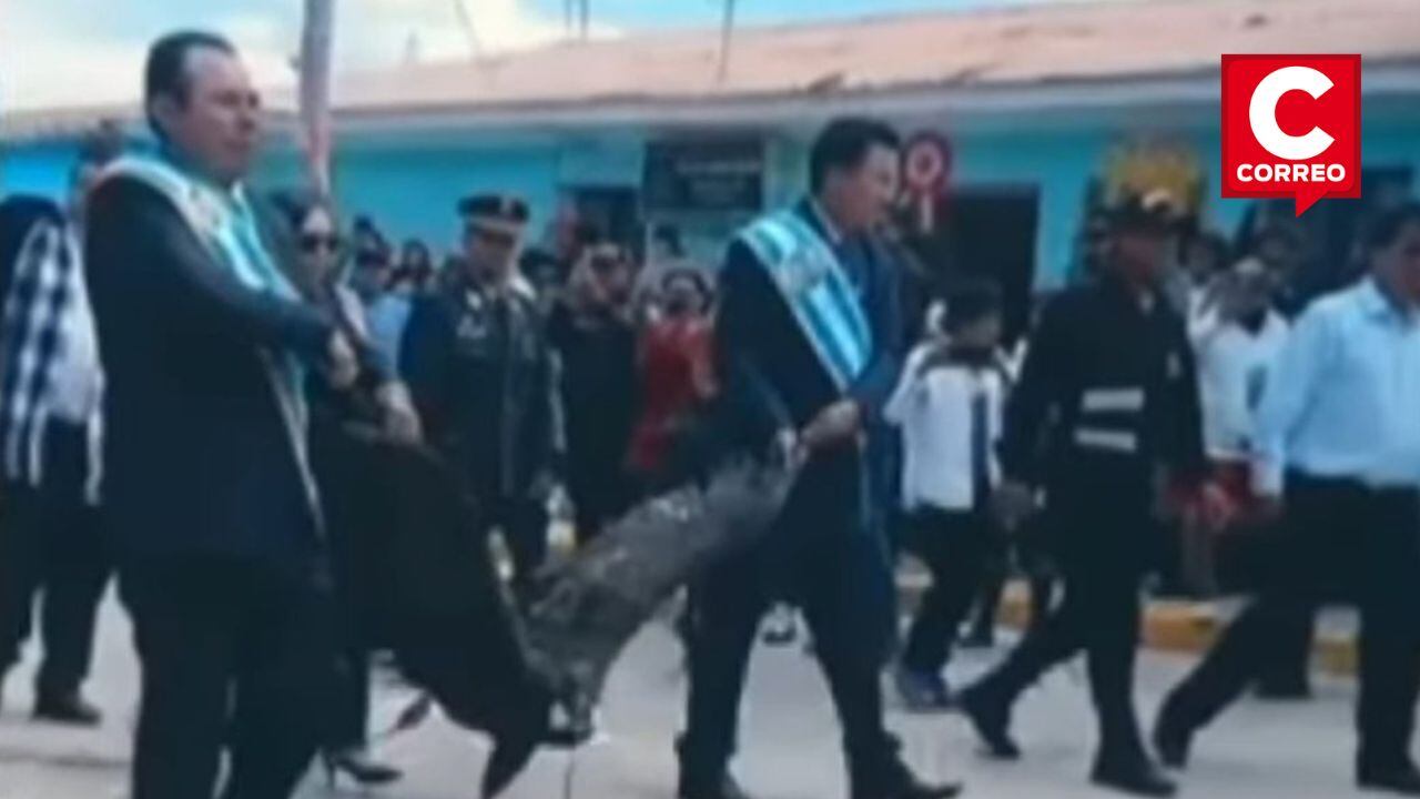 El hecho ocurrió el pasado viernes 28 de julio durante las celebraciones por Fiestas Patrias en la provincia de Cotabambas. En las imágenes difundidas por TV Perú, se observa a la autoridad edil y otros funcionarios sujetando al ave por sus alas. El animal intenta liberarse, pero sus esfuerzos son en vano.