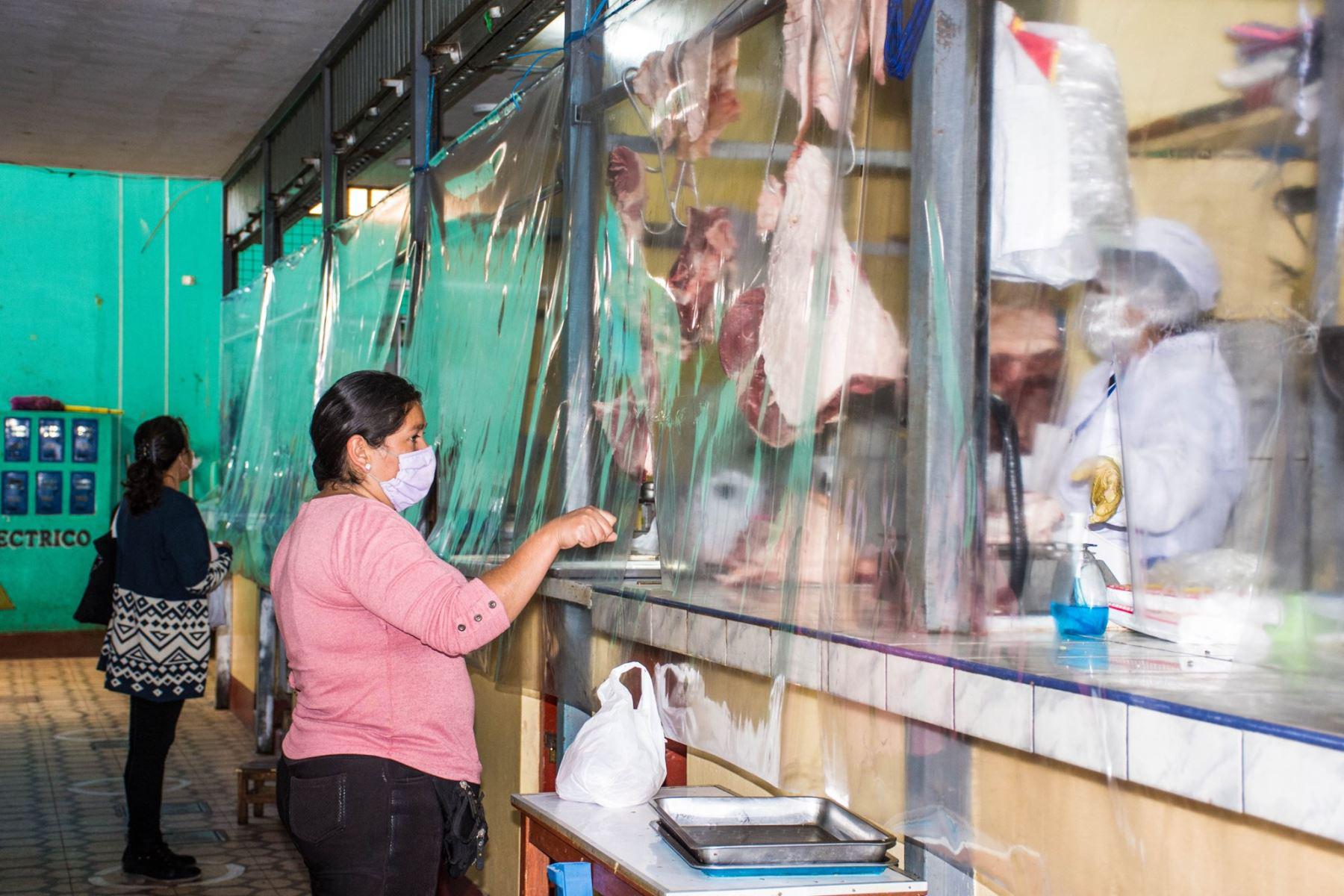 Comerciantes del Mercado Central de Huanta, en Ayacucho, colocaron cortinas de polietileno transparente con la finalidad de terner contacto directo con los clientes y evitar posibles contagios.