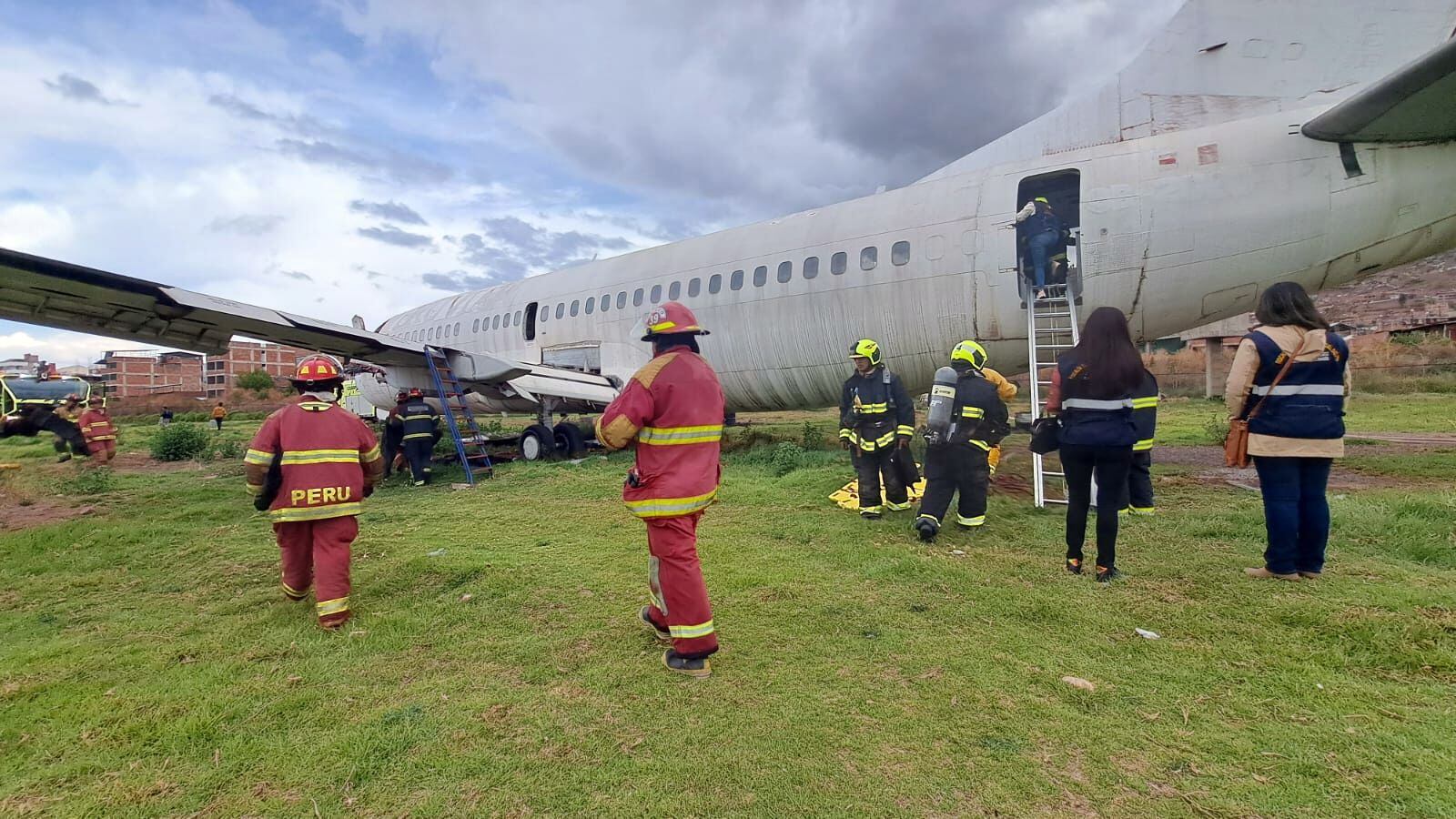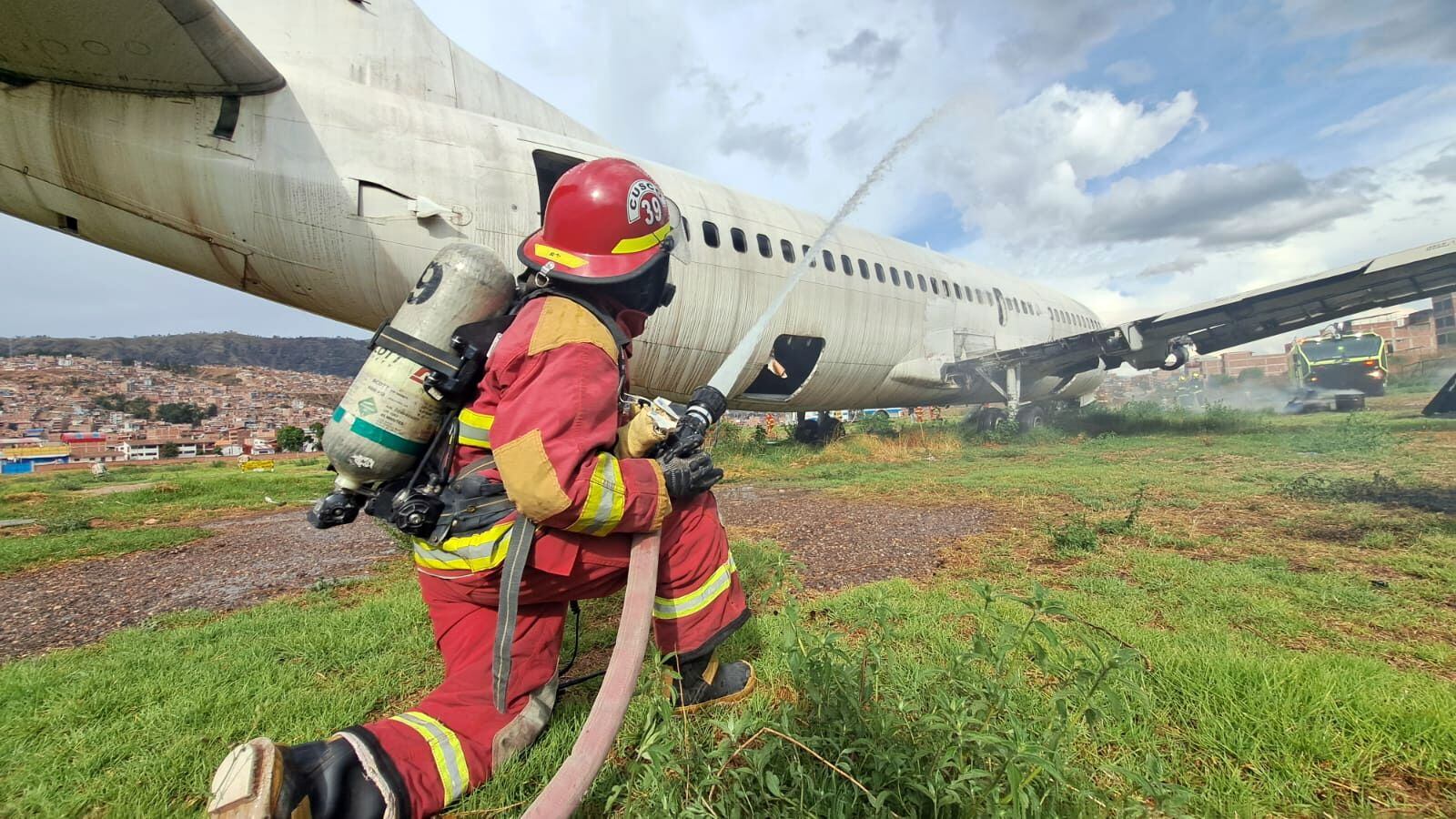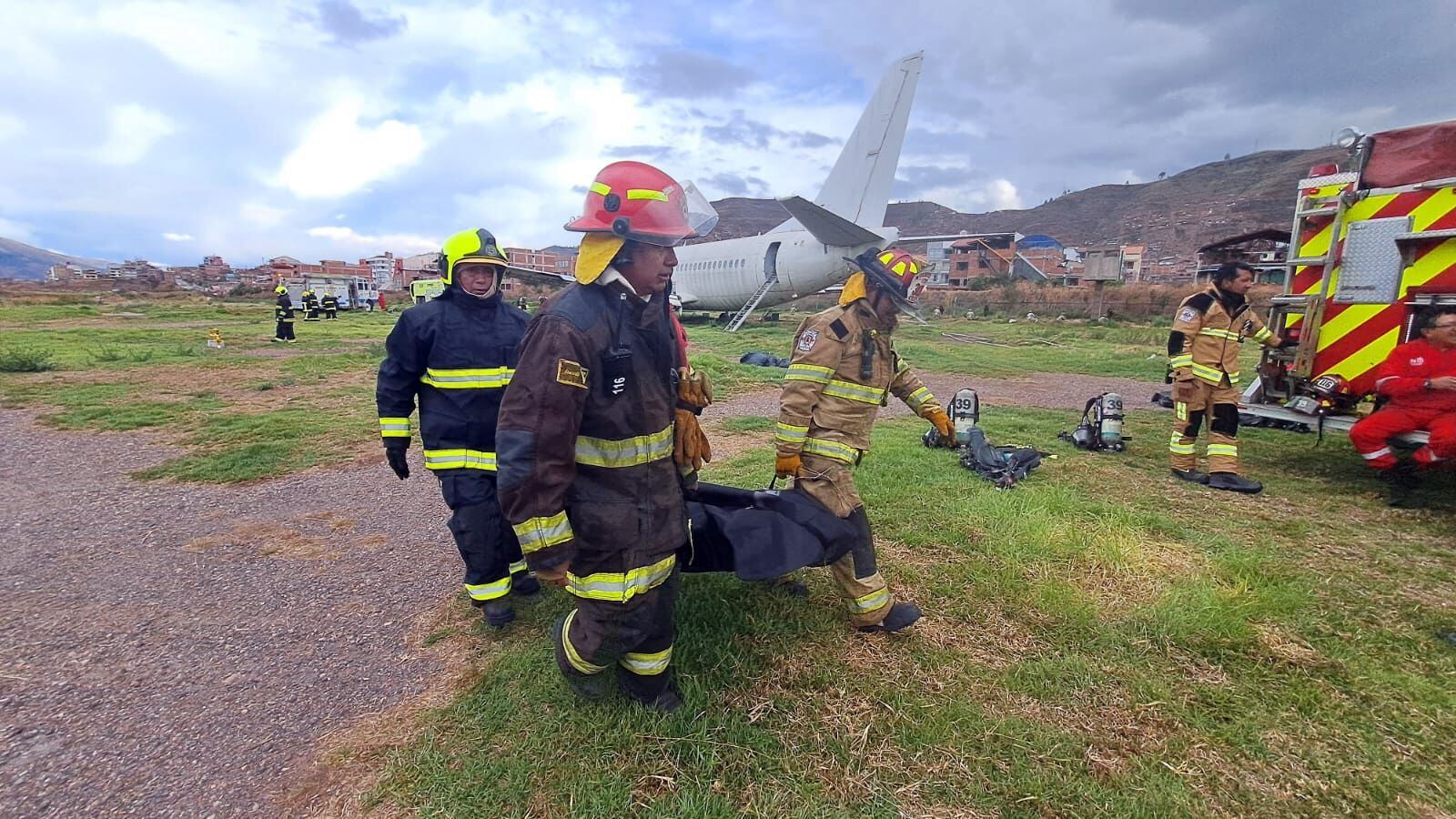 En el lugar trabajaron los bomberos aeronáuticos del Servicio de Salvamento y Extinción de Incendios - SEI, apoyados por voluntarios de las compañías 39 y 116 de Cusco y San Sebastián, junto a equipos del Samue y clínicas particulares; mientras tanto miembros de la Policía y Ejército brindaban labores de seguridad en el perímetro del ejercicio.
