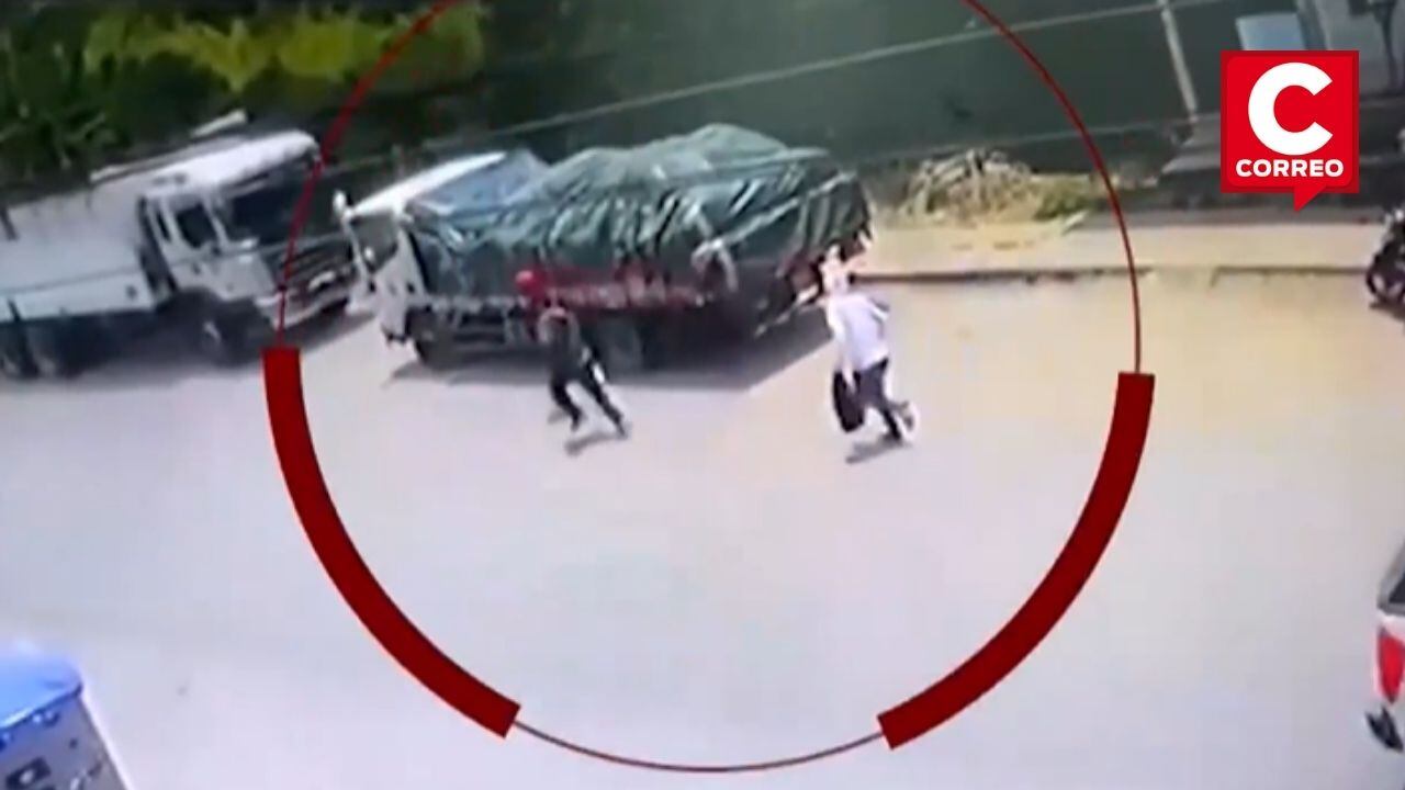 Dos individuos, identificados como Marco López Guzmán y Cristián García fueron, detenidos después de ser impactados por una camioneta mientras intentaban huir tras cometer un asalto en una empresa cafetalera en Cajamarca.