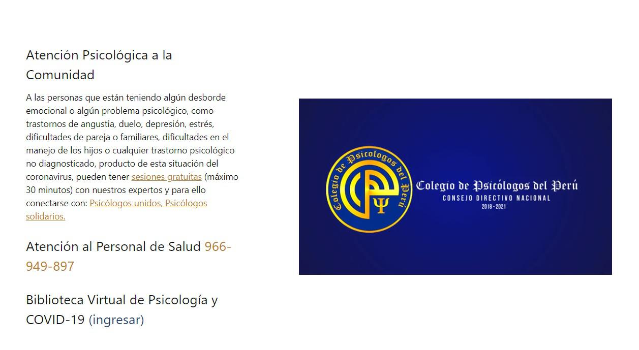 Todo el sector salud unido para afrontar esta pandemia. Así de claro lo tiene el Colegio de Psicólogos del Perú que ha dispuesto un grupo de 500 profesionales de la salud mental, para que atiendan por línea telefónica a todas las personas que sufran los estragos del impacto psicológico, debido al aislamiento social obligatorio por coronavirus (COVID-19).