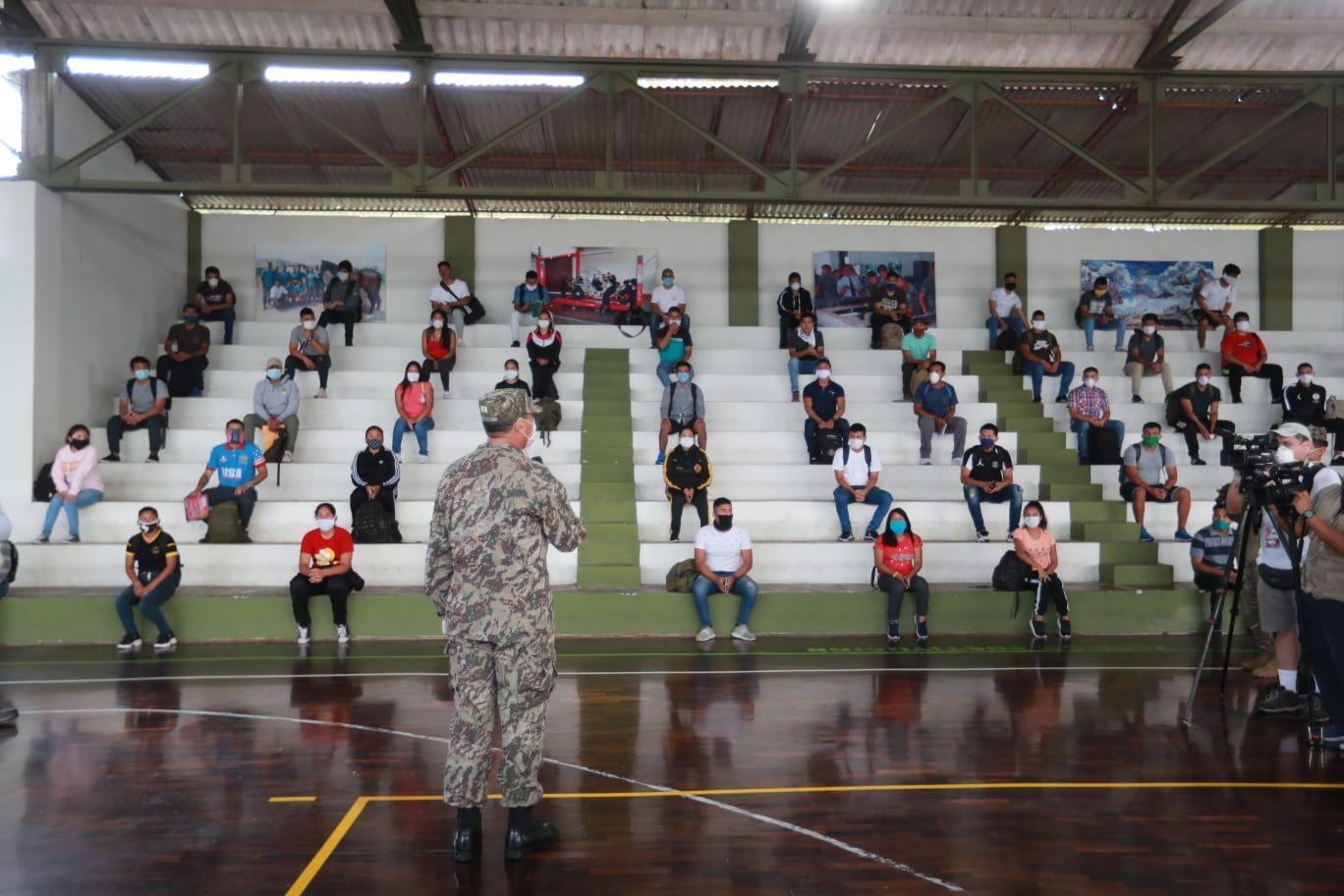 Varios de los primeros reservistas fueron recibidos en Chorrillos con bandas de música del recinto militar, señaló el General Pedro Revilla Morales, jefe de Administración de Reemplazos y Reserva del Ejército.