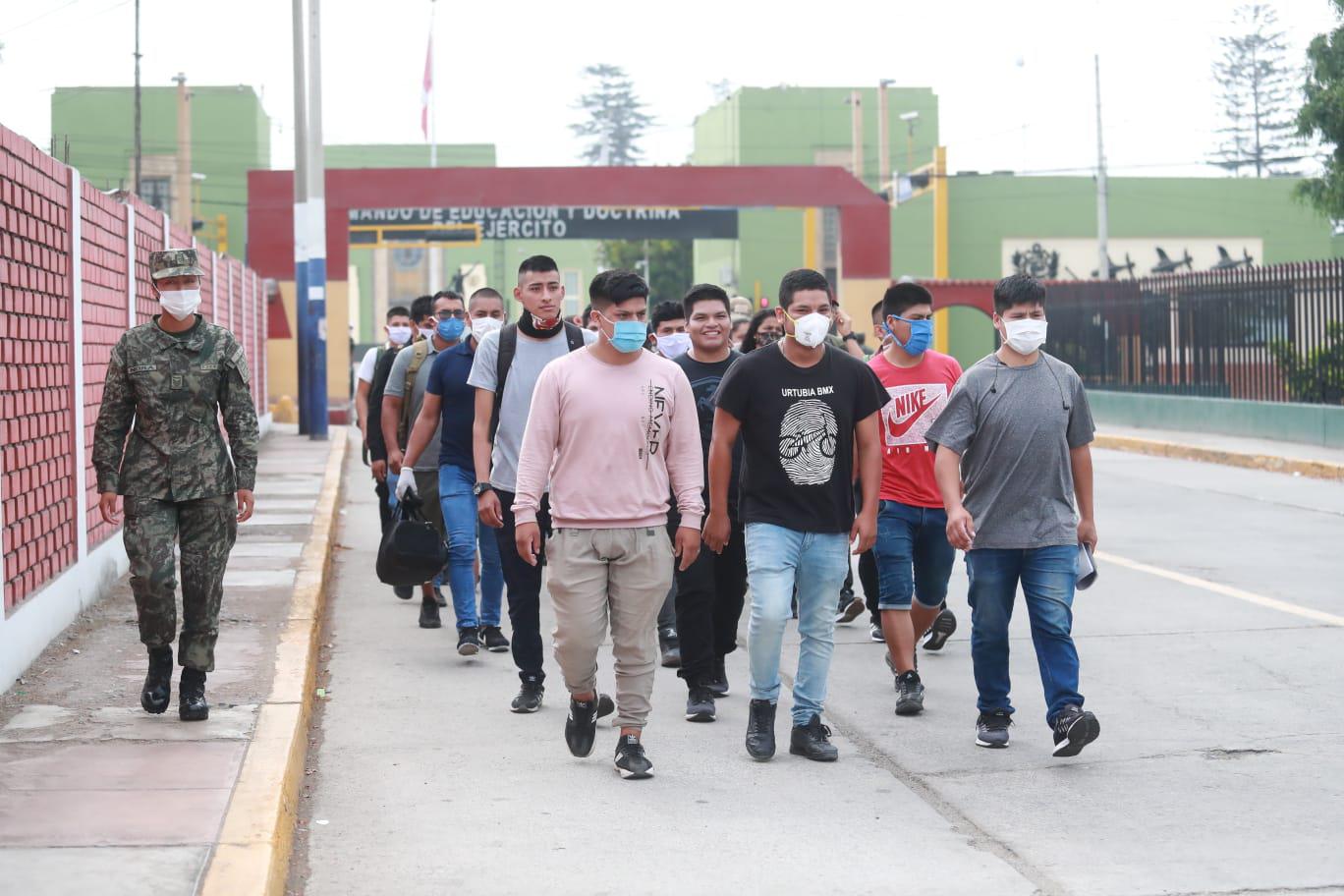 Jóvenes reservistas licenciados del Ejército peruano de las promociones de los años 2018, 2019 y 2020 empezaron a presentarse esta mañana ante sus centros de entrenamiento a nivel nacional para insertarse posteriormente a las labores de patrullaje por la emergencia sanitaria debido al coronavirus en nuestro país.