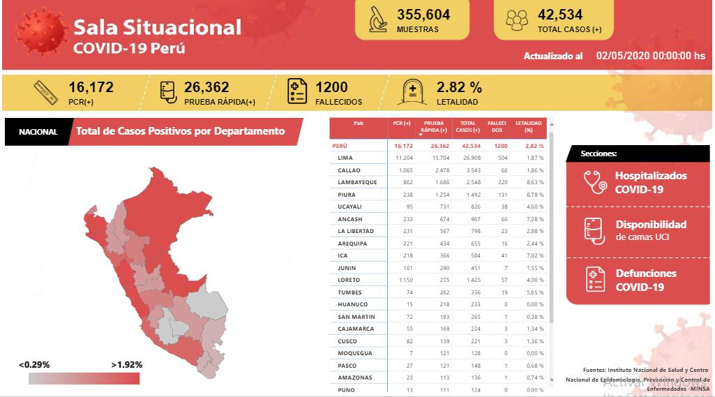 El presidente Martín Vizcarra informó que el número de casos positivos de coronavirus en el Perú se elevó a 42534 en el día 48 del estado de emergencia y aislamiento social obligatorio, medidas dispuestas para contener el avance del nuevo coronavirus (COVID-19).