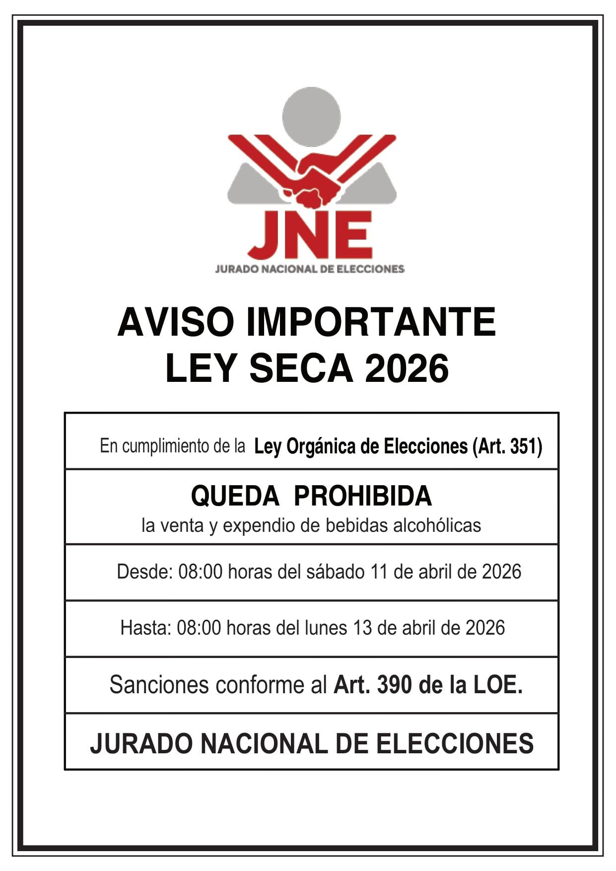 La restricción fue dispuesta por el Jurado Nacional de Elecciones (JNE) como parte de la normativa vigente en periodos electorales. La medida prohíbe la comercialización y el consumo de bebidas alcohólicas en todo el territorio nacional durante un tiempo determinado.