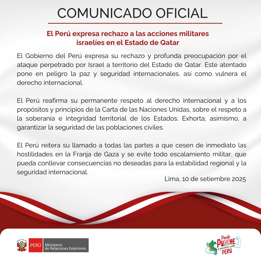 El pronunciamiento, emitido el 10 de septiembre en Lima, se produce en un contexto de intensificación del conflicto en Medio Oriente, situación que ha despertado gran preocupación en la comunidad internacional.