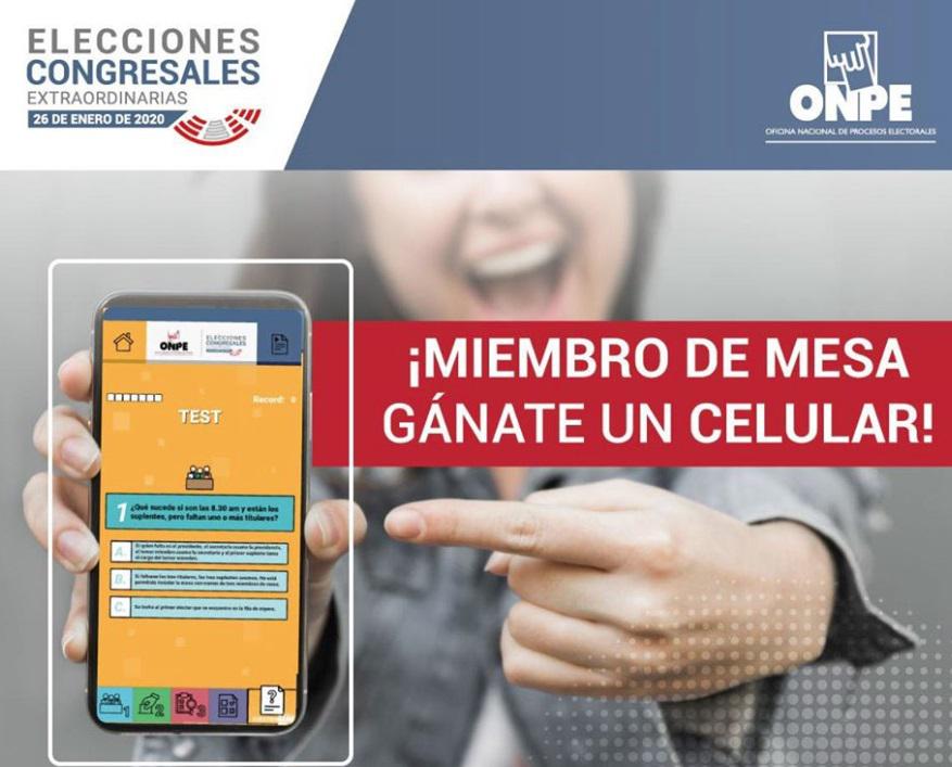 La Oficina Nacional de Procesos Electorales (ONPE) lanzó un sorteo dirigido a todos los miembros de mesa que participarán en las Elecciones Extraordinarias Congresales 2020 a realizarse este domingo 26 de enero.