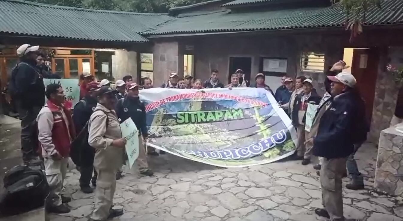 Los agremiados al Sindicato de Trabajadores del Parque Arqueológico de Machu Picchu - Sitrapam, reclamaron contra la nueva modalidad virtual de venta de boletos para la maravilla mundial.