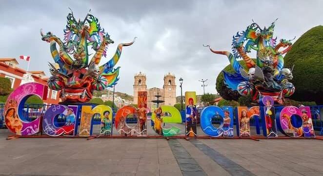 A pocos días del concurso de danzas de trajes de luces en honor a la Virgen de la Candelaria; la avenida Simón Bolívar de Puno luce decorada y colorida con figuras alusivas a la festividad.