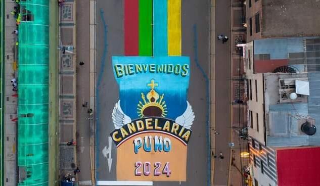 Un grupo de artistas plásticos se han congregado en la referida vía (parte de la ruta de la parada folclórica) para diseñar y pintar figuras de danzas y mensajes inspirados en la patrona de Puno.