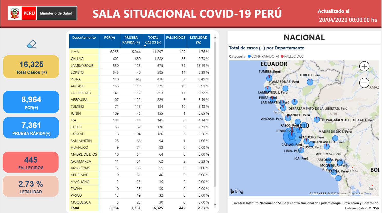 En conferencia de prensa, el presidente Martín Vizcarra dio a conocer que el número de casos confirmados de coronavirus en el Perú se elevó de 15,628 a 16, 325