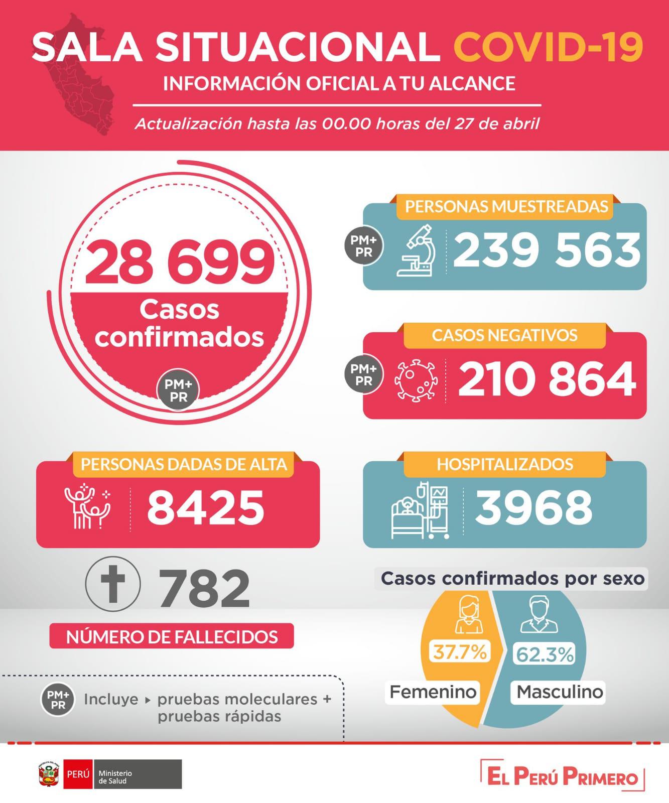 LEE: Coronavirus Perú HOY LO ÚLTIMO: fallecidos, casos confirmados y reportes del COVID-19 hoy lunes 27 de abril