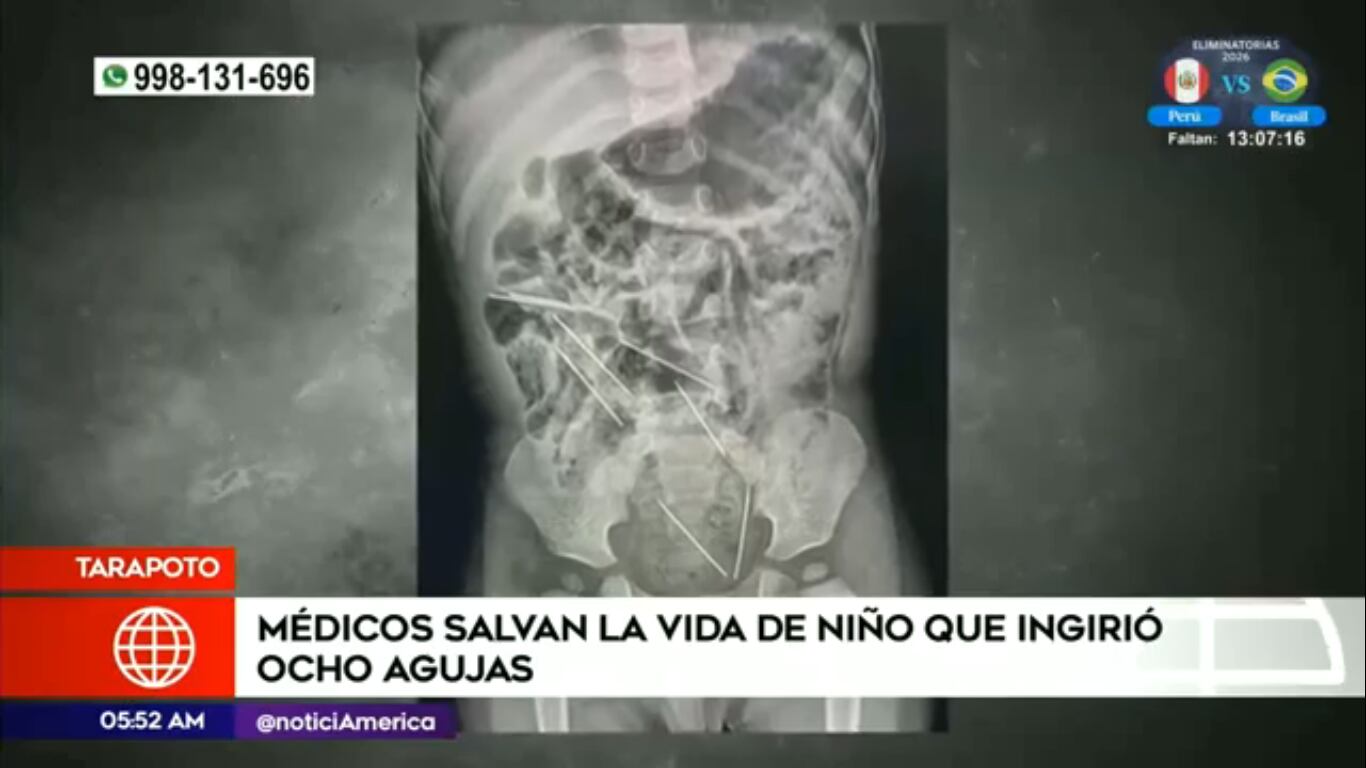 Un niño de 2 años ingirió 8 agujas de inyectables, sin embargo, los médicos del Hospital de Tarapoto en la región San Martín, lograron salvarle la vida. La madre del menor contó que el hecho ocurrió en un descuido.