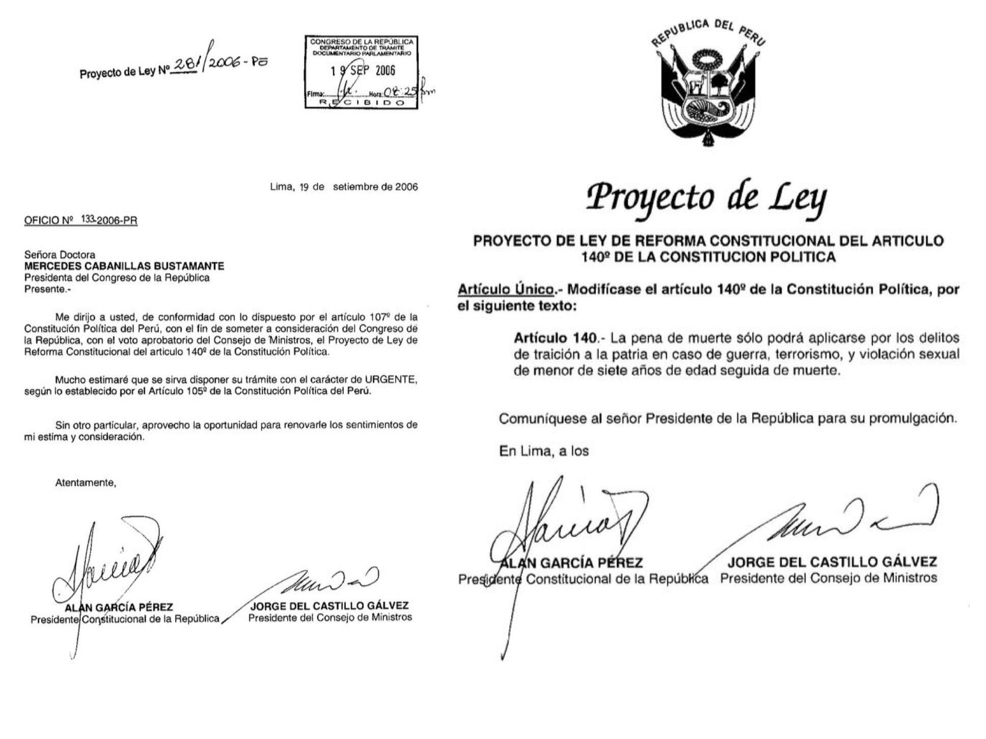 Mi primer proyecto el 2006 fue la pena de muerte a los violadores asesinos. (Tenía 80% de aprobación. Hoy tiene 87%). Pero el congreso ignoró al pueblo y lo archivó.— Alan García (@AlanGarciaPeru) 12 de febrero de 2018