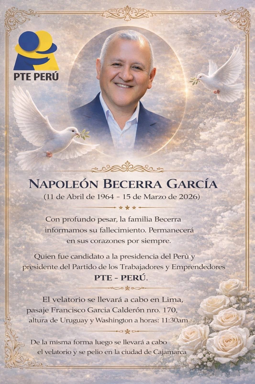 En ese sentido, Walter Becerra transmitió un mensaje directo a quienes integran la organización en todo el país. “Desde acá pido a todos los militantes a nivel nacional, como familia, como hermano de Napoleón Becerra, que su muerte no sea en vano, que sigan trabajando, que sigan luchando para salvaguardar los intereses de todos los peruanos y podamos conseguir una patria sin delincuencia, sin corrupción y sobre todo con seguridad”, sostuvo.