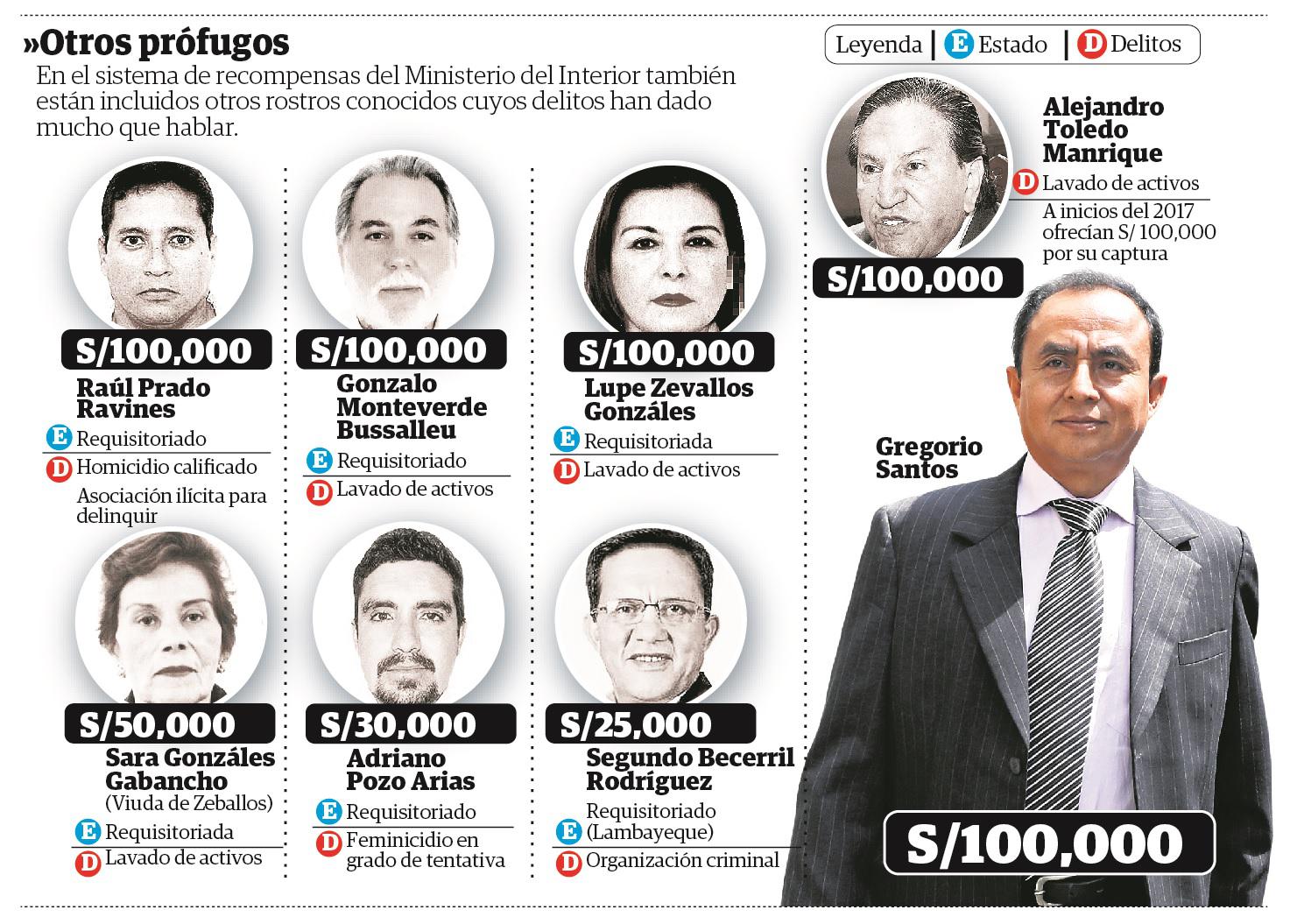 Entre estos casos, además del de Santos, hay más prófugos de la justicia involucrados en casos como el de “Aerocontinente”, “Lava Jato”, o algún feminicidio (ver infografía).