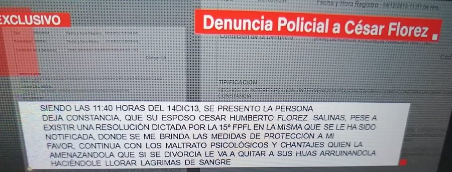 A esto se suma que Cuarto Poder reveló que César Humberto Florez Salinas tiene cuatro denuncias policiales por el delito de violencia familiar. En un documento del 14 de diciembre de 2013, se da cuenta que maltrataba psicológicamente a su esposa y la amenazaba con quitarle a sus hijas si decidía divorciase.