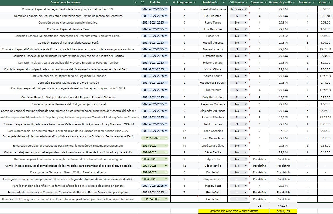 Correo pudo verificar que entre agosto y diciembre de 2024, el Parlamento destinó la suma de 3 millones 214 mil 155 soles para contratar personal en 23 comisiones especiales. A estas se sumarán seis recientemente creadas, es decir, son 29.