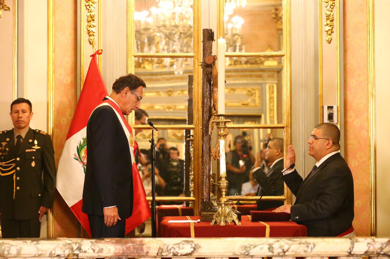 El presidente de la República, Martín Vizcarra, juramentó esta noche a los nuevos ministros de Estado: de Energía y Minas, Justicia, Educación, y Transportes y Comunicaciones. Más temprano, el mandatario y el presidente del Consejo de Ministros, Vicente Zeballos, tuvieron una reunión de emergencia.