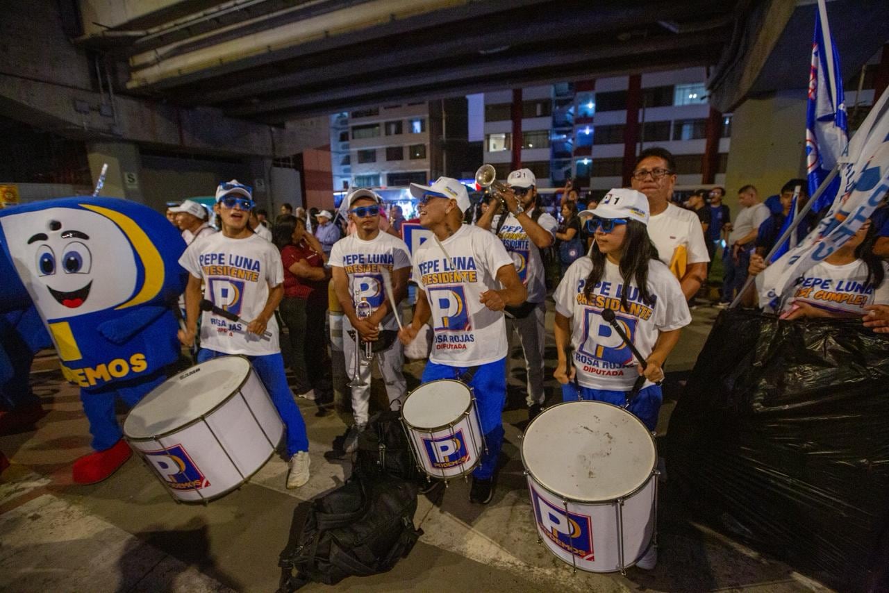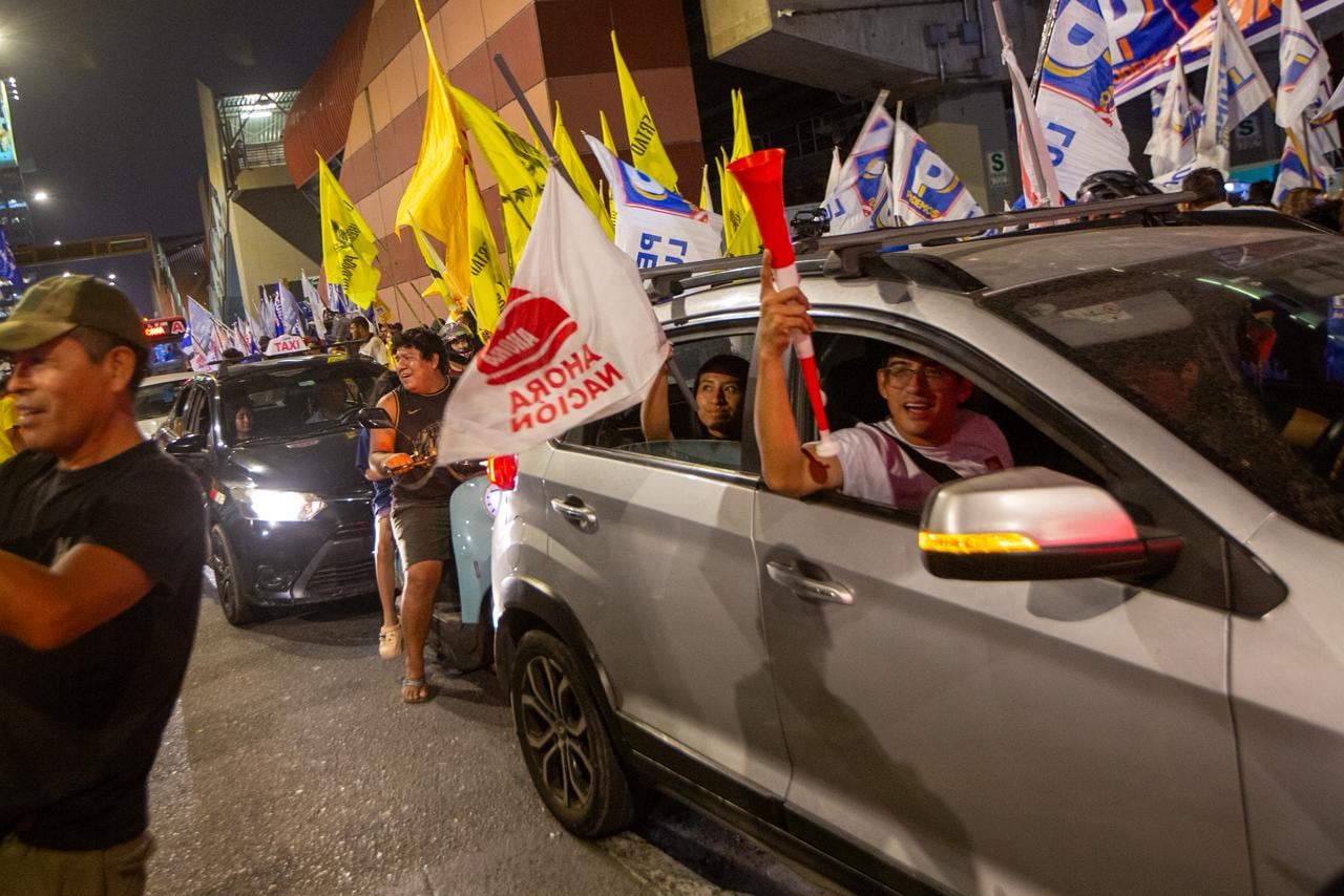 Simpatizantes de diversas organizaciones políticas se reúnen en los exteriores del Centro de Convenciones de San Borja, donde se desarrolla el último debate electoral rumbo a las elecciones presidenciales 2026.