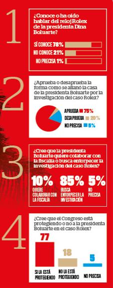 Asimismo, un considerable 78% de los encuestados aseguró que sí conoce y escuchó del reloj Rolex de la mandataria. En contraste, el 21% contestó que desconoce el caso.