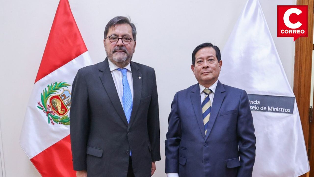 El jefe del Gabinete Ministerial, Eduardo Arana, sostuvo hoy un encuentro con el embajador de Guatemala en Perú, Carlos José Escobedo Menéndez, en la sede de la Presidencia del Consejo de Ministros (PCM).