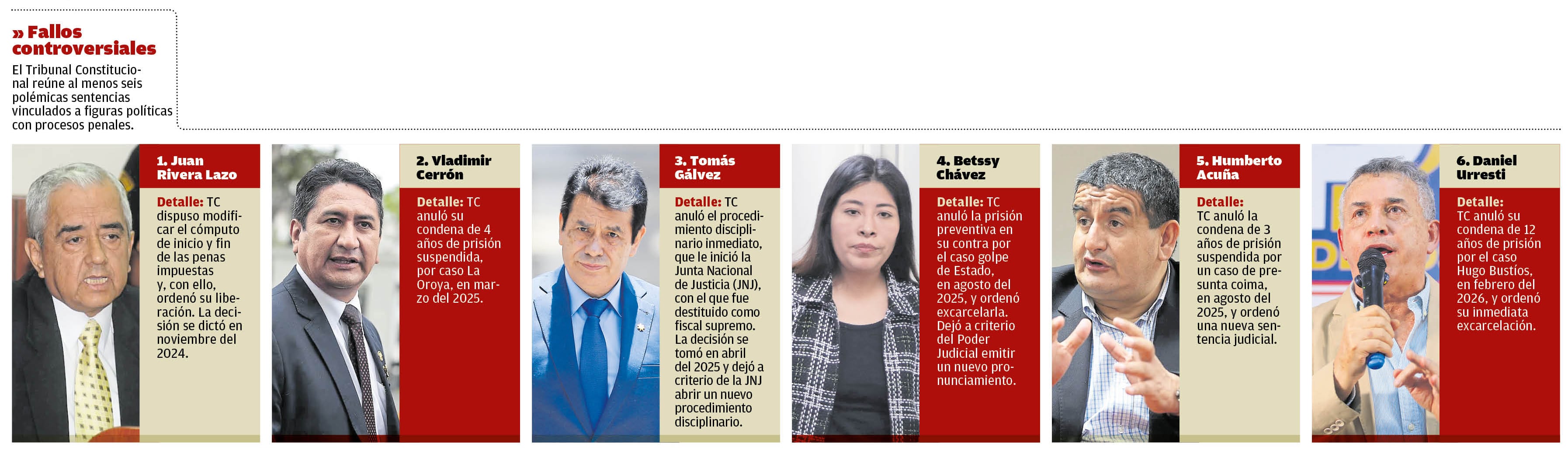 Bajo escrutinio público se encuentra la actual gestión del Tribunal Constitucional (TC). La máxima institución de justicia en el país, que goza de total autonomía y no tiene tipo de fiscalización, tiene en sus manos el futuro político inmediato del prófugo Vladimir Cerrón.