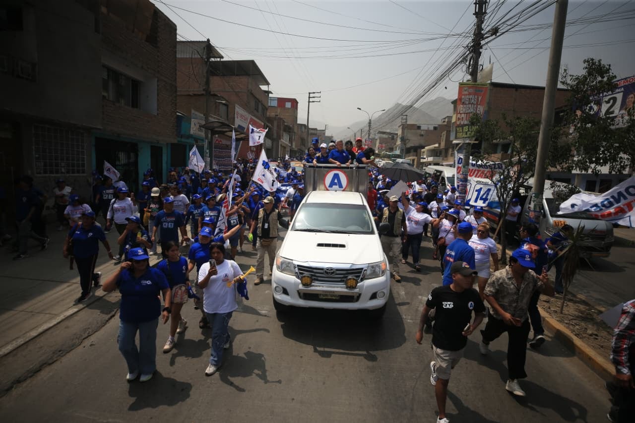 César Acuña, de Alianza para el Progreso, encabezó una movilización en Collique, en el distrito de Comas.