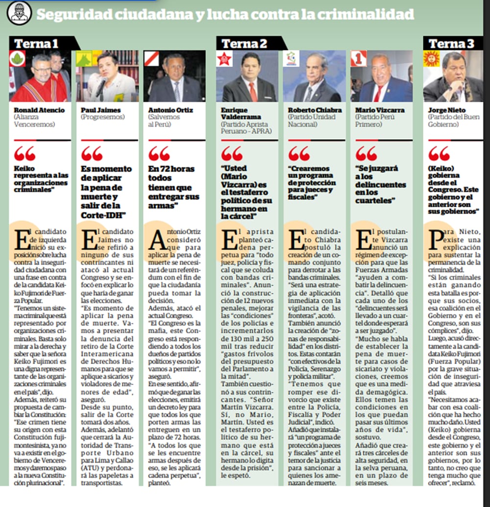 No obstante, con el transcurrir del debate, Keiko se vio obligada a responder los pullazos de contrincantes como Ronald Atencio, Jorge Nieto, Mario Vizcarra y Mesías Guevara, entre otros.