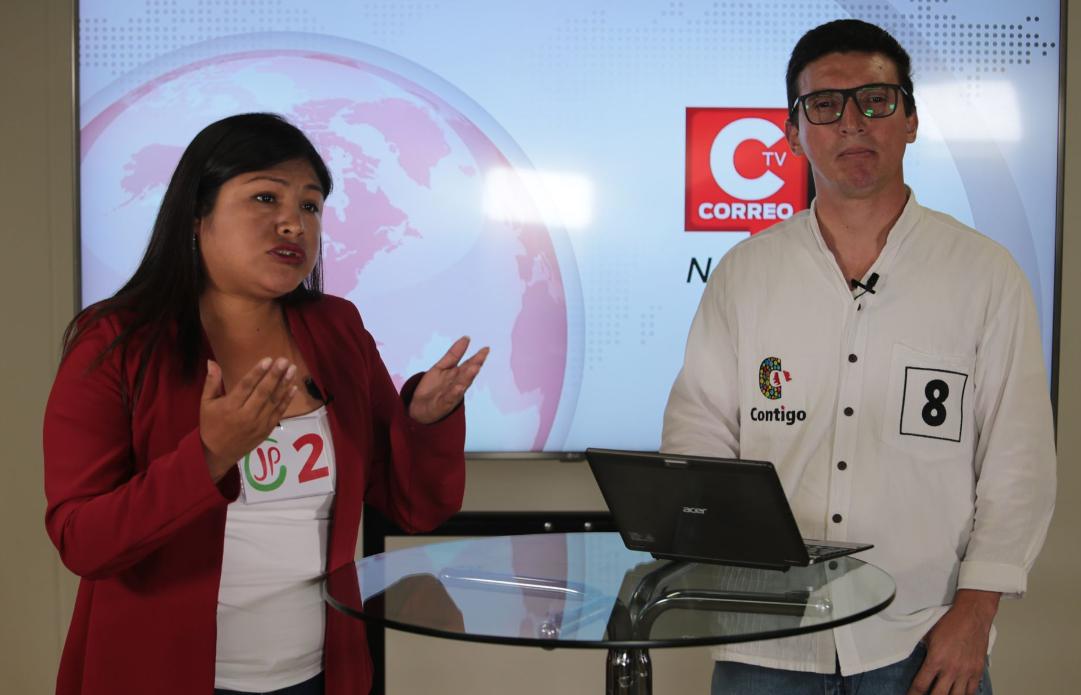 Grace Baquerizo, postulante al Congreso con el número 2 por el partido de izquierda Juntos por el Perú, se presentó en el primer debate del programa de Correo ‘Conoce a tu candidato’, donde se enfrentó a su adversario Justo Balmaceda, del partido Contigo con el número 8.