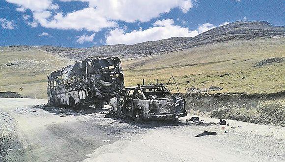 SE AGRAVA. Mientras diferentes instituciones pedían que se retome la calma, el gobernador regional de Apurímac, Wilder Venegas, señalaba que los comuneros habían tomado como rehenes a siete trabajadores del proyecto. También prendieron fuego a un bus de la minera.