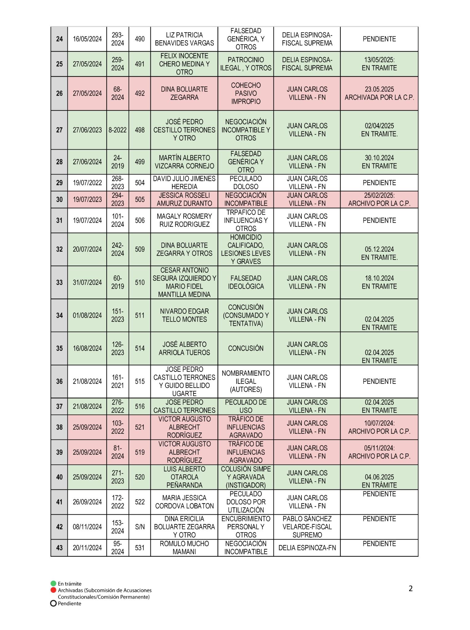 - En trámite (🟢): Casos en evaluación por la Subcomisión de Acusaciones Constitucionales y la Comisión Permanente.