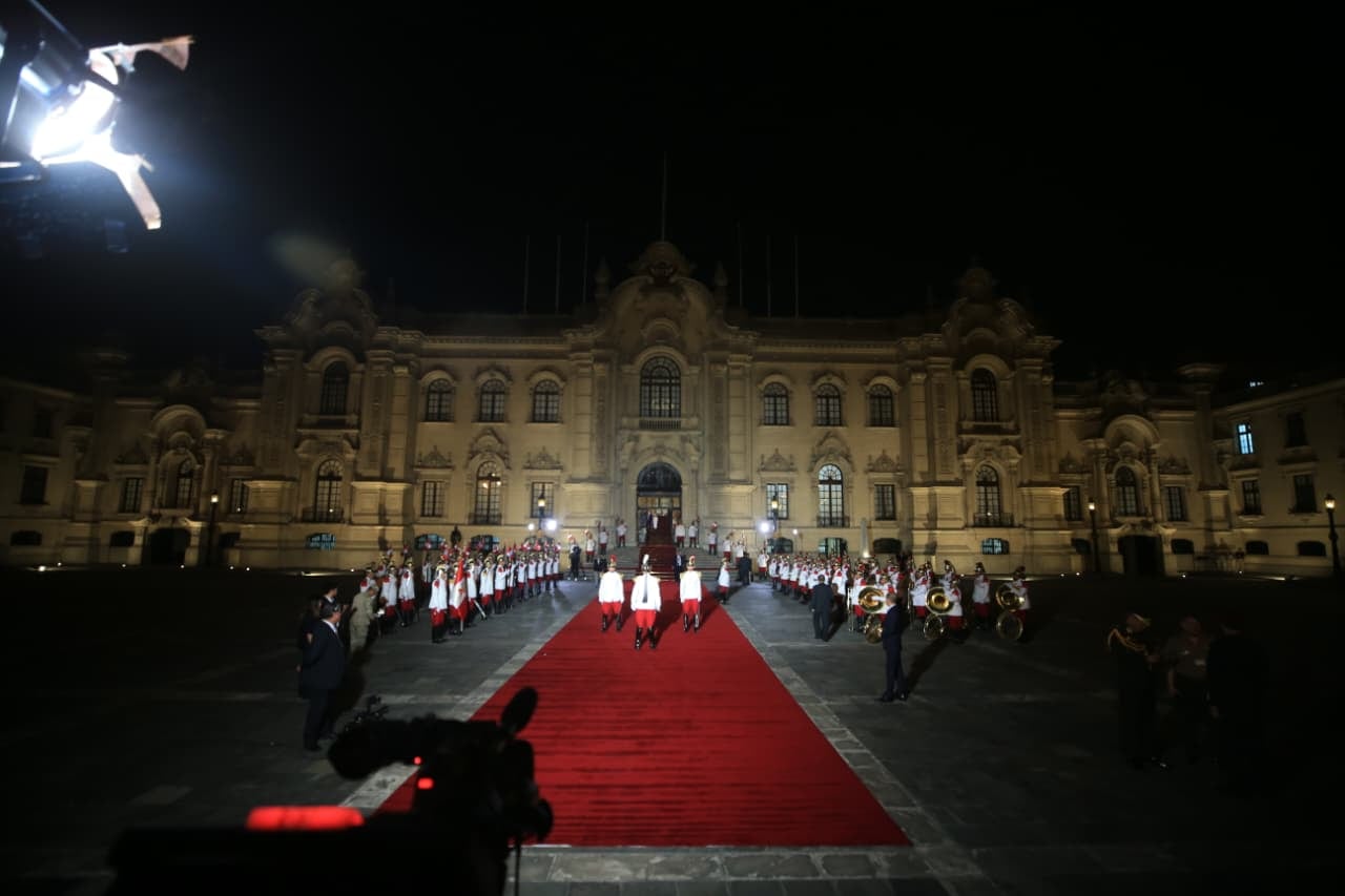 El acto protocolar estuvo a cargo del Regimiento de Caballería Mariscal Domingo Nieto, unidad responsable de la seguridad presidencial y de las ceremonias oficiales.
