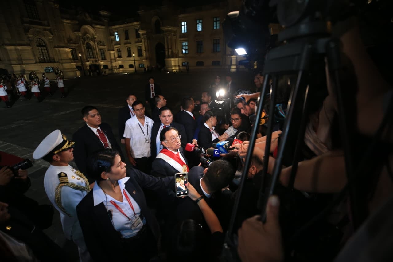 Balcázar arribó a la sede del Ejecutivo a bordo del vehículo presidencial, escoltado por efectivos de seguridad y agentes policiales, en lo que marcó su primera llegada oficial a Palacio tras asumir el cargo. El flamante mandatario también declaró a la prensa.
