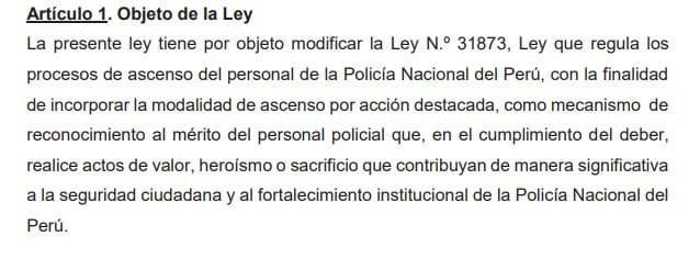 Además, el proyecto propone añadir un nuevo requisito al artículo 7 de la misma ley, el cual regula las condiciones que los agentes deben cumplir para ser promovidos. Este punto busca reforzar la transparencia en los procedimientos de ascenso dentro de la PNP.