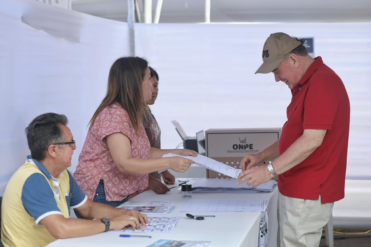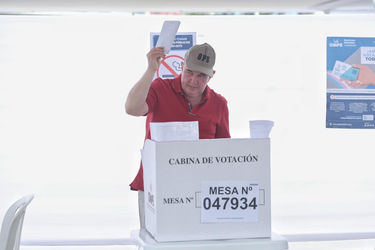El candidato presidencial Rafael López Aliaga se convirtió en el segundo postulante en sufragar en la jornada electoral. El líder de Renovación Popular llegó hasta un colegio en San Isidro junto a su candidata a la vicepresidencia, Norma Yarrow, para emitir su voto.