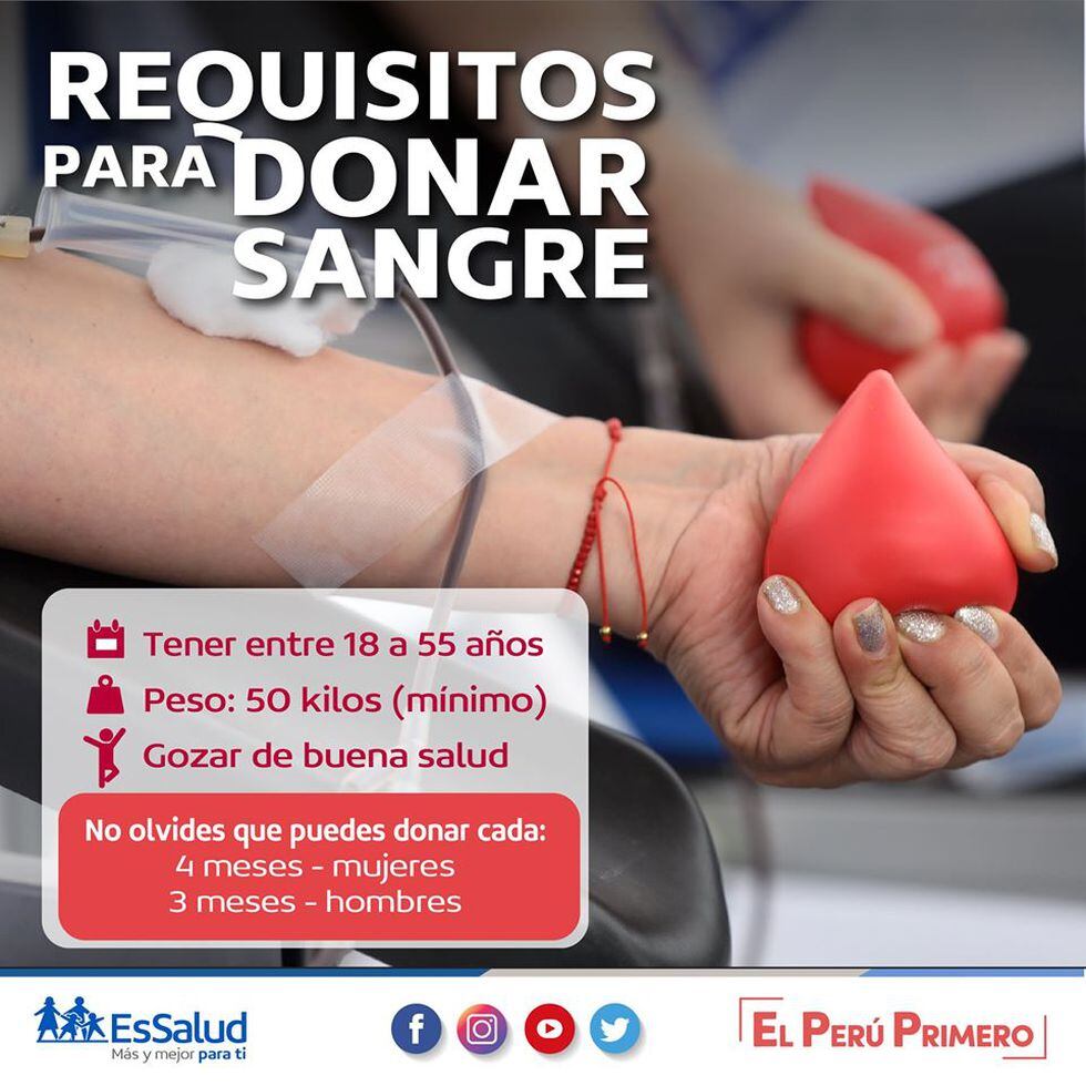 Según el portal del Minsa, el intervalo entre cada donación de sangre debe ser de 3 meses en el caso de las mujeres y 4 en hombres.