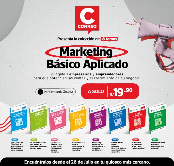 El aporte y experiencia de Fernando Zelada, autor del exitoso libro “Este no es un libro de marketing”, presenta la colección “Marketing Básico Aplicado”. Estos libros son ideales para los empresarios de MIPYMES, ya que permite aprender nuevas estrategias de marketing, negocios y potenciar las ventas de los negocios.